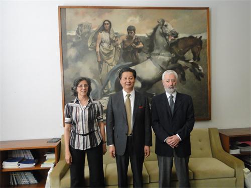 会谈结束后,副校长Teresa Cid陪同代表团一行参观了里斯本大学校园。途中遇见了几个在该校读书的中国学生,娄源功询问了他们读书的基本情况,并表示欢迎他们学业完成后到河南大学工作和生活。