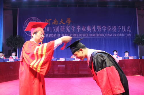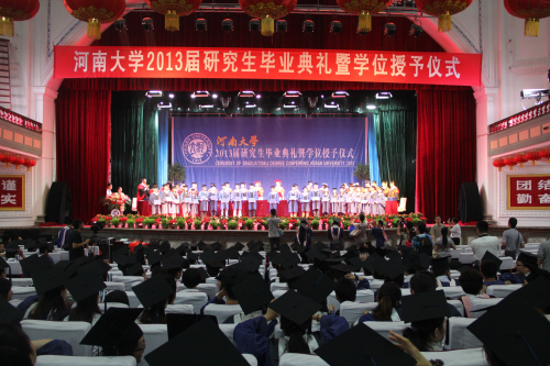 典礼在雄壮的国歌声中拉开帷幕。校党委副书记王凌宣读了《河南省教育厅关于表彰2013年河南省优秀应届研究生毕业生的决定》、《河南大学关于表彰2013届优秀研究生毕业生的决定》、《河南大学关于表彰2012年优秀博士硕士学位论文获得者的决定》。