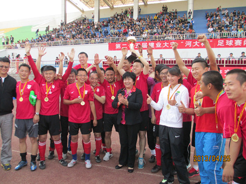 2013年4月25日下午,随着一场“研究生院对国际教育学院”的激情足球比拼,在呐喊与激情中,河南大学第二十五届“河大杯”足球赛闭幕式暨颁奖仪式圆满举行。我校党委副书记王凌,河南省足球协会、河南建业足球俱乐部、河南足球事业发展基金会、建业大宏等机构主要负责人,以及我校体育学院等其他相关部门的领导、老师出席本次闭幕式。闭幕式由校团委副书记沙莎主持。