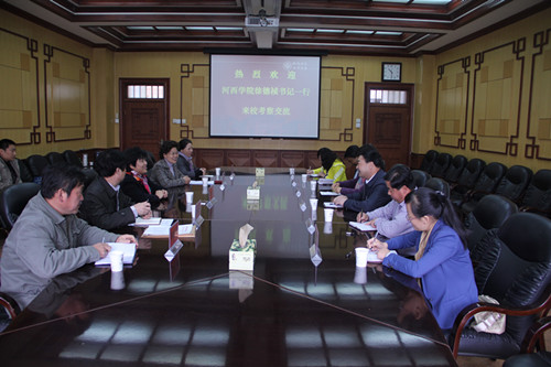 徐德祯对我校的热情接待表示感谢,并介绍了河西学院的基本情况。随后,双方人员就学生的思想教育、日常管理、学生资助、心理健康教育等问题进行了全面交流。