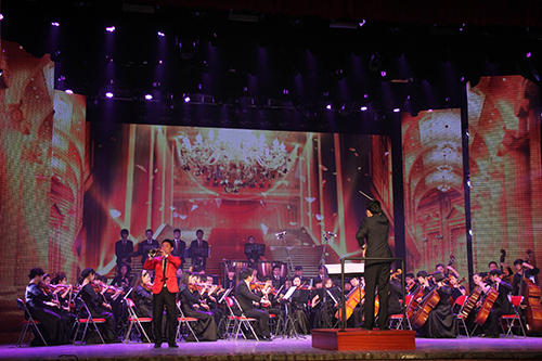 由吉喆老师担任首席、程欣奇担任指挥的河南大学交响乐团再次登上晚会舞台,80余名师生先后演奏了《春节序曲》、《黄土情》、《河南大学校歌》。优美的旋律,洋溢着浓浓的节日气息,传递出师生对新年的美好祝福。