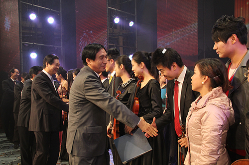 2012年12月31日晚,河南大学2013年新年晚会在大礼堂华彩上演。校领导关爱和、娄源功、梁晓夏、赵国祥、王凌、宋纯鹏、关学增、邢勇、刘志军、雷霆、朱恒宽与来自各单位的2000余名师生一起守岁,共同迎接新年的到来。