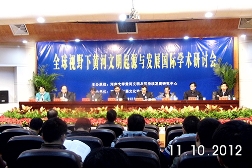2012年11月10日上午,由教育部人文社会科学重点研究基地河南大学黄河文明与可持续发展研究中心主办、东方毅拓展文化协会协办的“全球视野下黄河文明起源与发展国际学术研讨会”在我校金明校区新行政楼二楼隆重举行。我校副校长宋纯鹏,南开大学中国社会史研究中心常建华教授,南京大学教授、我校校友范毓周等出席开幕式。来自中国社会科学院、北京大学、复旦大学、南京大学、南开大学等31所研究所、高校的专家、学者参加了研讨会。开幕式由黄河文明与可持续发展研究中心执行主任苗长虹主持。