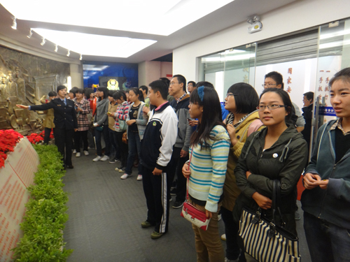 2012年10月30日下午,河南大学2012级文理实验班40余名优秀学子齐聚市公安局,先后参观了开封市公安局110指挥中心以及市警察博物馆,现场接受社会治安的安全教育。河南大学学生处和市局指挥中心、铁塔派出所的有关同志参加了本次活动。