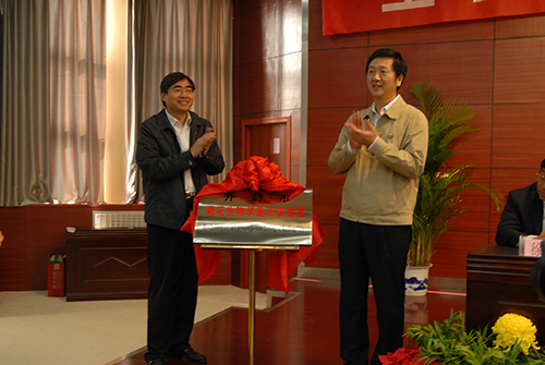 黄道功和宋纯鹏共同为河南大学生命科学学院、开封市园林菊花研究所联合申请的开封市重点实验室“菊花生物学实验室”揭牌。
