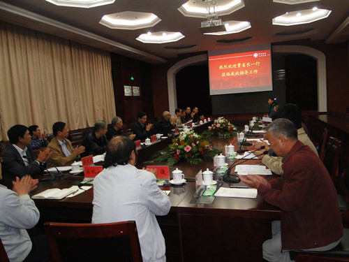 2012年10月17日上午,在开封市老干部局人员陪同下,以省十届人大常委会副主任、省敬老助老总会常务副会长贾连朝为组长的省委老干部局、省敬老助老总会督查组一行4人莅临我校,就我校“四就近” (就近学习、就近活动、就近得到关心照顾、就近发挥作用)工作贯彻落实情况进行督导检查。校党委书记关爱和、副校长关学增,校离退休处、关工委、老科协、老年大学、总务处、后勤服务总公司相关负责人参加汇报会。会议由关学增主持。