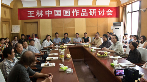常务副校长赵国祥观看了画展,参加了艺术学院一楼会议室举办的“王林中国画巡展”学术研讨会并讲话。他说,王林水墨人物画秉承传统,累积有续,创作来自传统的世俗人物风情的禅意写生,化俗如禅的慧心豪情,心神为之一和,注重寓意、趣味和思想,蕴含着哲理和诗意。艺术学院院长赵振乾同与会的许多画家都发表了深刻的见解。