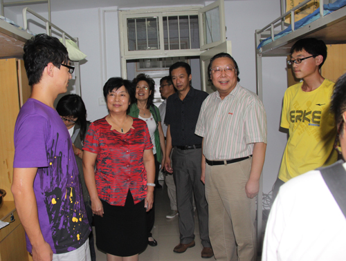 为进一步了解新生入学住宿情况,2012年9月2日晚,校领导带领学校有关部门负责同志,分别深入到明伦校区和金明校区学生宿舍,亲切慰问了2012级新生。