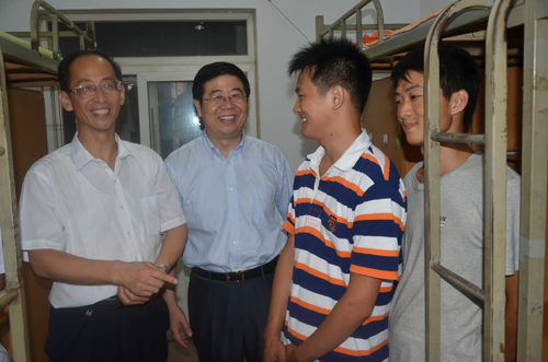 在明伦校区,常务副校长赵国祥、校党委副书记王凌一行先后看望了学十公寓、学十一公寓、仁和公寓的学生,在公寓工作人员的引导下,与2012级新生进行了深切交谈。“住着还习惯吗?”领导们热情地与新生拉起了家常。得知有的同学家比较远,赵国祥表示,“河南老乡要照顾好外地同学,把这个小家经营好。”校领导希望新生保持良好的卫生习惯,快速融入大学生活,调整好学习状态,全面发展。