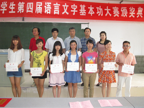 我校参加教育部主办的全国高校大学生第四届语言文字基本功大赛获奖者颁奖典礼于2012年6月7日在明伦校区举办。此次颁奖典礼分为演讲与朗诵汇报和颁奖两个环节。来自文学院的汪璐同学代表获奖选手作了大会发言。教务处、语委的领导和老师向获奖选手颁奖。