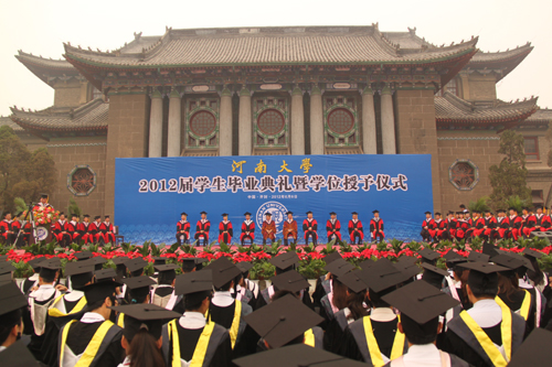 “丹心一片厚寄恩师深情,热泪两行感恩母校培育”。2012年6月6日,来自我校各学院的本科毕业生齐聚明伦校区大礼堂广场,参加河南大学2012届学生毕业典礼暨学位授予仪式。校领导关爱和、娄源功、梁晓夏、赵国祥、王凌、宋纯鹏、关学增、邢勇、刘志军、雷霆及学校各职能部门、各学院主要负责人和导师代表出席典礼,共同见证这一庄严而神圣的时刻。毕业典礼由校党委常务副书记梁晓夏主持。