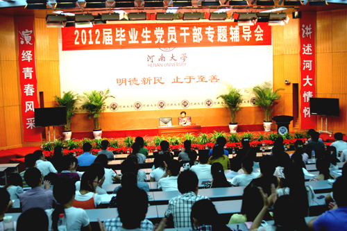 5月24日下午,在2012届毕业生即将离开母校之时,2012届毕业生党员干部专题报告会在金明校区行计算机二楼报告厅举行。校党委副书记王凌作专题报告,来自全校各学院的毕业班辅导员、毕业生党员及学生干部代表聆听了报告,报告会由学生工作部部长周保平主持。