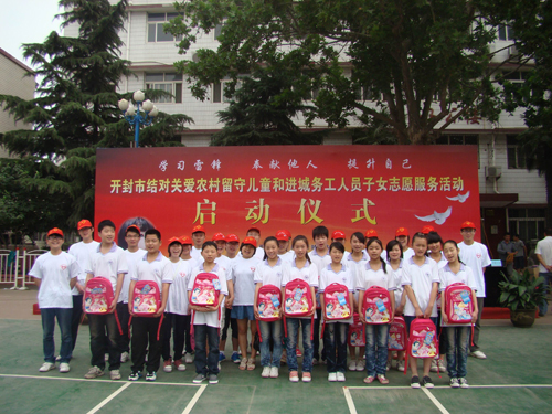 2012年5月25日上午,开封市结对关爱农村留守儿童和进城务工人员子女志愿服务活动在市七中正式启动,我校作为爱心捐赠单位参加了此次活动。