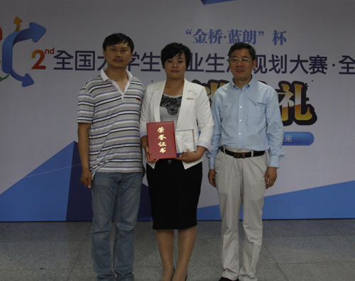 我校体育学院2008级体育教育专业马红艳以其真挚的情感、动人的讲述、鲜活的经历打动了所有评委和在场的观众,并以优异的成绩荣获了“‘金桥•蓝朗’杯全国第二届大学生职业生涯规划”大赛全国总决赛二等奖。因事迹感人,马红艳还被大赛评为“最佳感动人物奖”。