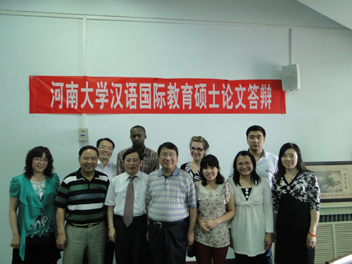 2012年5月12日上午,国际汉学院在科技馆六楼会议室举行了汉语国际教育专业硕士论文答辩会,来自越南的丁明莲、阮明珠,来自俄罗斯的安贞丽卡,来自喀麦隆的夏乐,来自哈萨克斯坦的萨那特等五位受孔子学院奖学金资助的留学生均顺利通过了论文答辩。