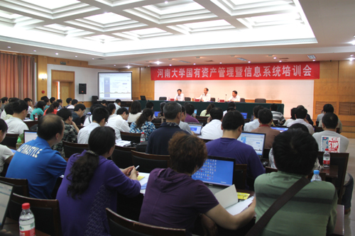 5月8日下午,河南大学国有资产管理暨信息系统培训会在明伦校区新行政楼第四会议室隆重举行。副校长、校国有资产管理委员会副主任关学增,省财政厅国有资产管理处处长金贵联和来自学校各单位的近200名资产管理工作负责人及资产管理员参加了会议。会议由我校国有资产管理办公室主任、财务处副处长赵德营主持。