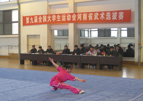2011年12月30日,第九届全国大学生运动会河南省武术选拔赛在我校体育学院武术馆拉开战幕。