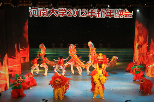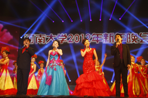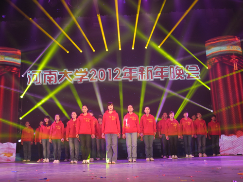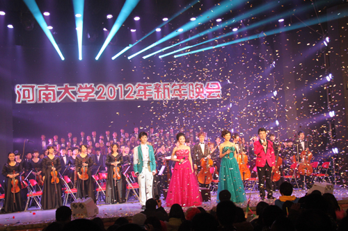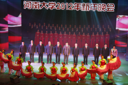 盛世华夏辞旧岁,百年河大迎新年。2011年12月31日晚,河南大学2012年新年晚会在大礼堂隆重举行,校领导关爱和、娄源功、梁晓夏、赵国祥、王凌、宋纯鹏、关学增、邢勇、刘志军、雷霆、朱恒宽出席晚会,与现场2000余名师生共迎新年。