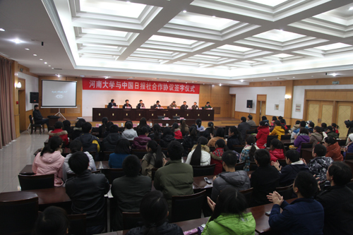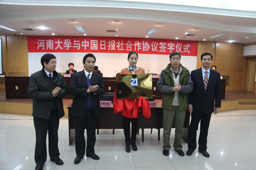 2011年12月26日上午,河南大学与中国日报社合作协议签字仪式在行政楼第四会议室举行。根据协议,中国日报社旗下的21世纪报将在河南大学设立高校记者站,并与河南大学外语学院共同在演讲比赛、新闻采编培训、报纸发行等方面为学生提供实践平台,并展开深度合作。