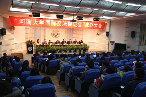 2011年12月22日下午,“河南大学国际交流促进会”成立大会在明伦校区科技馆二楼会议室举行。校长娄源功、副校长宋纯鹏出席,参加大会的还有部分高层次海外留学人才以及相关部处、学院的教师和学生代表。大会由国际交流处处长马骁勇主持。