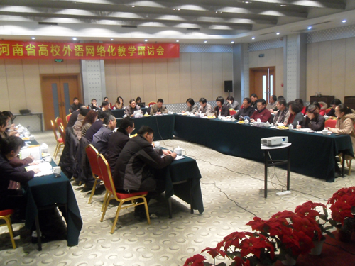 2011年12月10日,由我校外语学院主办、蓝鸽集团有限公司协办的河南省高校外语网络化教学研讨会,在金明校区中州国际金明酒店二楼会议室举行。来自我校和郑州大学、解放军信息工程大学、河南工业大学等全省20余所高校的30多名外语学院院长、系主任及研究专家出席了此次研讨会。