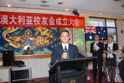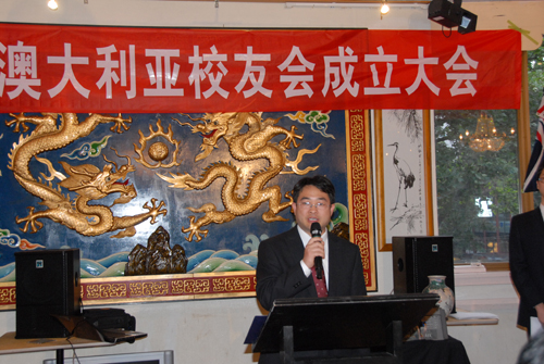 刘钢军代表澳大利亚校友会作了主题发言。他说,河南大学澳大利亚校友会的成立,是我们校友生活中的一件大喜事。她使我们有了重温师恩,共叙友情的平台,有了回眸故土、交流信息、了解母校、回报母校的渠道和机会。校友会将遵循“增进在澳校友间的联系;促进校友和其他社团、学术界和企业界的交流;加强母校同校友之间的联系,增进友谊,开展教育、科研、学术文化交流活动”为宗旨,努力服务校友,使澳大利亚的河大校友会真正成为全体校友的精神家园。同时,在百年校庆之际,衷心祝愿母校再谱新的华章!再铸新的辉煌!