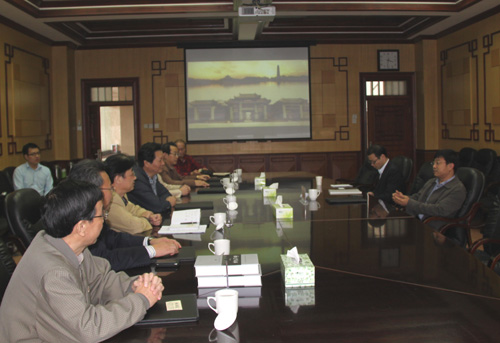 在共同观看了校情片《大学之道》及河南大学国际学院(龙子湖校区)的两套规划方案后,娄源功对张海潮的到来表示热烈欢迎,并简要介绍了我校的发展现状和未来规划。他说,坚持提升国际化办学水平是我校九次党代会提出的一项发展战略,是我们坚持不懈的奋斗目标。为此,我们要营造国际化办学氛围,力争与世界知名大学牵手,努力在更高层次上实现办学水平的国际化。国务院刚刚颁布了《关于支持河南省加快建设中原经济区的指导意见》,我校获支持建设国内一流大学,我们一定要抓住这宝贵的历史机遇,努力实现百年名校的振兴。