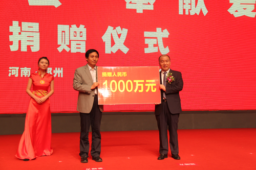 2011年9月16日下午,“回报社会 奉献爱心”捐赠仪式在郑州国际会展中心举行,共有27家河南省内外知名企业进行了现场捐赠,捐赠总额达6.5555亿元人民币,用于河南省的扶残助残、教育、文化、医疗、交通等公益事业。捐赠仪式上,河南超越基金会代表上海仁鼎投资有限公司向我校捐赠1000万元。校党委书记关爱和参加捐赠仪式,并代表学校上台接受捐赠,从河南超越集团董事局主席杨清河手中接过了善款。我校是此次接受捐赠单位中唯一的高校。