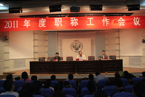 9月8日上午,我校2011年度职称工作会议在明伦校区科技馆二楼报告厅召开。常务副校长赵国祥出席会议,各单位负责人、各单位(系列)评聘专业技术职务考核推荐领导小组成员、材料员和拟申报职称人员参加了会议。会议由人事处副处长谢翠英主持。