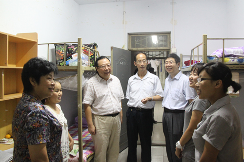 2011年9月1日晚上,带着学校对2011级新同学的牵挂,常务副校长赵国祥,校党委副书记王凌,副校长关学增、刘志军带领学校有关部门负责人,深入到明伦校区和金明校区的2011级研究生、本专科生学生宿舍,了解新生入住情况,对2011级新生表示热烈的欢迎。