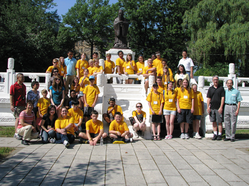汉语教学是本届夏令营活动的重要组成部分,学生依据汉语水平被编入了2个入门班、1个提高班,孔子学院的教师对各个级别的学生进行了认真辅导,每个学生的汉语水平在原有基础上都有了较大提高。除了汉语学习之外,夏令营活动还安排了丰富多彩的文化活动。今年的文化活动以“旅游中国”为主题,通过图片、声像材料、专题讲解等方式向学生们介绍了开封、北京、上海、西安等重要旅游城市。此外,学生们还学习了书法、折纸、打太极拳、打乒乓球、做中国结、唱民歌等传统中国文化技艺,品尝了中国名茶、中国美食。在活动的最后一天,夏令营全体师生参观了克里夫兰的“中华文化园”,在孔子塑像之前聆听了当地华人对孔子和中国文化园的介绍。