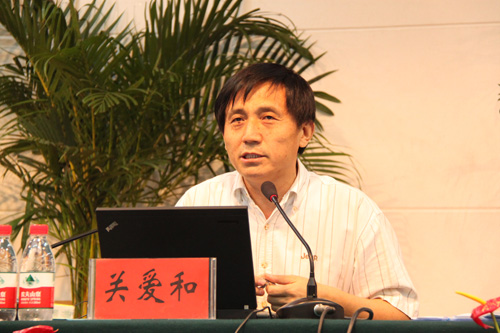 校党委书记关爱和作了题为《中国现代化进程和我们的选择》的主导发言。发言分3个部分:一、世界现代化趋势和中国现代化进程;二、河南大学的百年伟业;三、河南大学的未来发展。他阐述了自18世纪中期以来世界范围内波澜壮阔的现代化演进轨迹,以及中国自鸦片战争以来所经历的步履艰难、险阻迭起、前路漫漫的现代化之路,分析了中国现代化进程曲折缓慢的深层次原因,介绍了世界知识经济时代的主要特征。