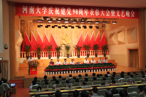 九十年风雨,九十载辉煌。在中国共产党成立90周年之际,2011年6月28日晚,我校在艺术学院音乐厅隆重举行庆祝建党90周年表彰大会暨文艺晚会,共同回顾党的光荣历史和光辉历程,表彰经过各基层党组织推荐、评选的先进集体和优秀个人。校领导关爱和、娄源功、梁晓夏、赵国祥、王凌、关学增、邢勇、雷霆、朱恒宽,各基层党组织负责人,机关各部门负责人,受表彰的先进集体代表和先进个人,以及全校各单位、各部门的师生员工代表与会。表彰大会由校党委常务副书记梁晓夏主持。