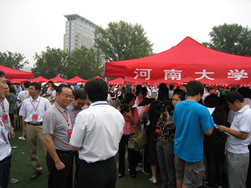 2011年6月25至26日,由省招办主办的2011年河南省普通高招现场咨询活动在郑州市河南农业大学举行,省内外数百所院校云集于此,为广大考生和家长提供及时有效的招考政策咨询及报考选择。我校招生工作办公室、国际教育学院、人民武装学院和民生学院组队参加了此次咨询活动。