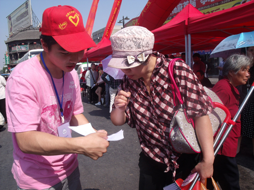 活动现场气氛热烈,同学们以散发调查问卷和提供咨为主要方式,协助并引导市民解决生活中的环保问题,为广大市民进行了细致的答疑与亲切的交流。活动开展期间,市环保局局长李凤刚对同学们表示亲切慰问,希望大家保护环境,节约资源,树立可持续发展理念,为绿色明天奉献一份力量。