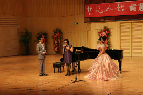 我校校友、中央电视台知名主持人任鲁豫和我校青年教师钟倩担纲音乐会主持人,为现场观众讲述了黄慧慧艰辛、勤奋的求学历程和勇于创新、善为人师的教学岁月。马秋华教授走上舞台,与黄慧慧热情拥抱,并代表金铁霖教授向她表示祝贺。黄慧慧对家庭、恩师和学生的真爱真心,感动了所有的观众,赢得了一阵又一阵热烈的掌声。
