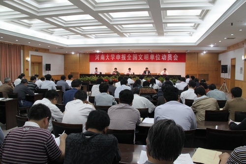 2011年5月26日下午,我校申报全国文明单位动员会在明伦校区新行政楼第四会议室召开。校党委书记关爱和、校长娄源功、校党委副书记王凌、副校长刘志军、校纪委书记雷霆出席会议。娄源功主持会议。