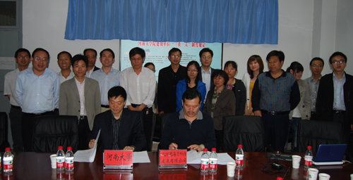 5月20日上午,我校在化学化工学院举行了河南大学与北京德海贝科技发展有限公司校企合作签约暨“河南大学•德海贝石油化工研究所”揭牌仪式。校长助理张保国及化学化工学院、特种功能材料重点实验室有关负责人、北京德海贝科技发展有限公司董事长李德军等参加签约及揭牌仪式,仪式由化学化工学院党委书记王明钦主持。