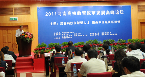 5月15日上午,由河南报业集团主办,河南大学等高校协办的2011年河南高校教育改革发展高峰论坛在郑州举行,省人大副主任李柏栓等领导出席,我校副校长刘志军参加论坛并作主题发言。