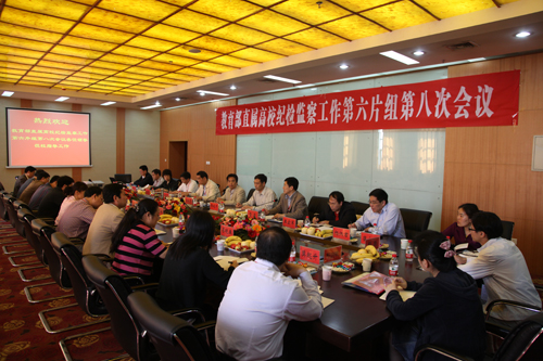 2011年5月13日上午,教育部直属高校纪检监察工作第六片组第八次会议在我校金明校区图书馆二楼会议室召开,来自南京大学、中国地质大学(北京)、中国地质大学(武汉)、北京外国语大学、中山大学、上海财经大学、东北师范大学、北京交通大学、大连理工大学、贵州大学、山西大学及河南大学等12所高校的纪委、监察处干部代表参加会议,我校党委常务副书记梁晓夏、校纪委书记雷霆出席会议开幕式。会议由雷霆主持。