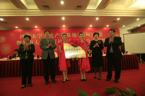 随后,蒋笃运、李宏伟、李永臻、娄源功共同为河南大学文化产业基(郑州)地揭牌,詹玉荣、张亚伟、张健、王凌为河南大学出版社有限公司揭牌。
