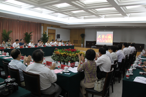 在观看了我校校情片《大学之道》后,校长娄源功汇报了学校的基本情况。他说,河南大学进入省部共建之后,正处在发展的最好时期,主要体现在“五个好”:团结好、合作好、发展好、稳定好、形象好。学校九次党代会提出了建设高水平大学的奋斗目标,明确了工作思路,并制定了《百年名校河南大学振兴计划》。他还就学校在发展中遇到的困难作了说明,并提出了建议。