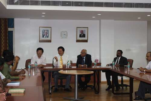 冒着炎炎酷暑,娄源功在印度访问了博拉科技大学的彼拉尼和果阿两个校区。彼拉尼校区作为该校的主校区是这次访问的重点。总校校长L.K. Maheshwari教授和下月即将就任的新校长Bijendra N. Jain教授在彼拉尼热情接待了娄源功一行。彼拉尼分校校长Raghurama G.详细介绍了学校的基本情况。娄源功介绍了此次访问的目的并播放了我校宣传片《大学之道》。娄源功说,印度的软件工程和产业闻名世界,众多中国学子非常有兴趣来印度学习,希望能在软件工程、信息管理和其他双方互补领域进行合作。双方就合作领域和方式进行了友好坦诚的交流。对方同意接受我校硕士生和本科生攻读博士和硕士学位;同意接受我校硕士研究生短期学习或完成论文;同意每年派部分教师到我校讲授软件和信息课程;娄源功同意帮助该校开设汉语课程并在其他双方感兴趣的领域开展科研合作。娄源功一行还参观了对方学校部分实验室。