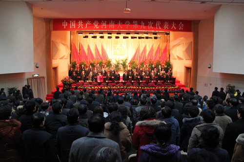 关爱和宣布,中国共产党河南大学第九次代表大会胜利闭幕!大会在雄壮的《国际歌》声中圆满结束。