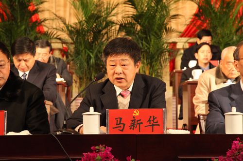 中共河南省委组织部副部长马新华代表省委组织部向大会的召开表示热烈祝贺。他在讲话中说,河南大学在近百年的办学历程中,秉承“明德新民、止于至善”的校训,弘扬“团结、勤奋、严谨、朴实”的校风,为社会进步、国家振兴和中原崛起做出了重要贡献。特别是2003年学校第八次党代会召开以来,学校的办学规模迅速扩大,办学环境和办学条件明显改善,整体办学水平、教育质量和服务社会能力不断提高,在全国高校中的排名逐年攀升,社会影响日益广泛。2008年10月,学校实现了省部共建,标志着河南大学在创建高水平大学的进程中迈出了新的步伐。省委、省政府对河南大学近几年建设和发展所取得的成绩是满意的,社会各界是充分肯定的。把河南大学建设成为高水平大学,重振百年名校风采,是省委、省政府和全省人民的共同愿望。目前河南大学正面临着良好的发展环境和难得的发展机遇,学校党委和全体师生员工要把握机遇,不负重托,努力培养出更多的优秀人才,早日实现百年名校的振兴。这次党代会对于学校总结过去、展望未来,理清思路、明确目标,凝聚力量、推动发展,进一步加快高水平大学建设步伐,具有重大意义。希望河南大学新一届党委以本次党代会的召开为契机,继续高举中国特色社会主义伟大旗帜,深入学习实践科学发展观,认真贯彻落实党的十七届四中全会精神,不断加快高水平大学建设步伐,为促进我省经济社会又好又快发展、实现中原崛起作出新的更大的贡献。
