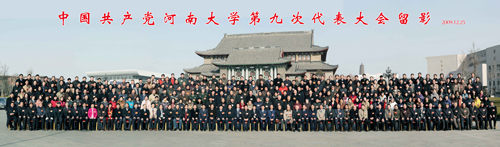 2009年12月25日上午,中国共产党河南大学第九次代表大会在我校艺术学院音乐厅隆重开幕。中共河南省委组织部副部长马新华,中共河南省委组织部副厅级组织员、科教企业干部处处长修振环,河南省教育厅党组成员、巡视员张健,中共开封市委副书记蒋益民,河南省政协原副主席、我校原校长李润田,河南农业大学党委书记程传兴,我校现任校级领导干部关爱和、娄源功、梁晓夏、赵国祥、王凌、曹奎、雷霆在主席台前排就坐。在主席台就坐的还有郑州大学、河南科技大学、河南理工大学等兄弟院校的领导和我校原党委书记王才安,原校长王文金。