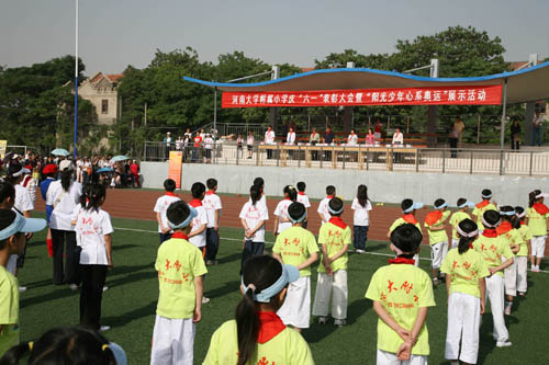 5月30日上午,为庆祝六一国际儿童节,我校附属小学和附属幼儿园分别在明伦校区体育场和开封市体育馆举行了“庆‘六一’表彰大会暨‘阳光少年心系奥运’展示活动”和“六一趣味游戏运动会”。校纪委书记王凌,原校工会主席袁顺友,及相关部门负责人出席了活动。