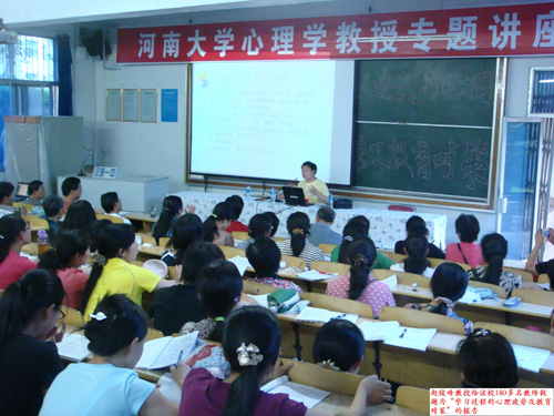 5月26日晚,赵俊峰教授和王瑶教授分别对学校的教师做了专题心理讲座,全校180名教师全部到场聆听讲座。这次地震不仅对学生的心理造成了严重的影响,也对教师的心理造成了很多影响。针对这种情况赵俊峰教授给老师们做了题为“学习过程的心理疲劳及教育对策”,王瑶教授为老师们做了题为“缓释压力,拥抱阳光”的报告。一位参加听课的老师说:“我们很少能够听到这样既结合中学教育教学第一线的实践,又有理论高度的报告,报告的内容太精彩了,对于我们来说太珍贵了,对我们现在的教学工作有很大的启发。”