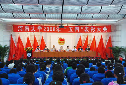 4月29日下午,河南大学2007—2008学年度“五四”表彰大会在科技馆二楼报告厅隆重召开。共青团河南省委副书记王丽,校党委副书记梁晓夏,副校级调研员孟庆琦,党委组织部、宣传部、学工部以及校团委的负责同志与会,大会由校团委副书记马晓静主持。