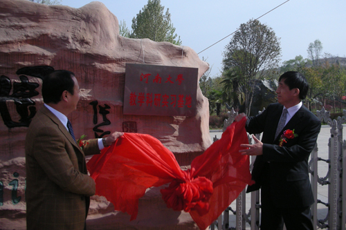 关爱和在揭牌仪式上发表了热情洋溢的讲话。他深情地追思在抗战流亡期间,南阳人民对河南大学的支持和帮助,高度赞扬了河南大学和南阳人民在革命战争年代结下的血与火的友谊;对西峡县委、县政府近年来对河南大学给与的帮助表示真挚地感谢。希望西峡教学科研实习基地在双方的共同努力下,建设成为校地合作的典范,成为河南大学科研教学基地的品牌。